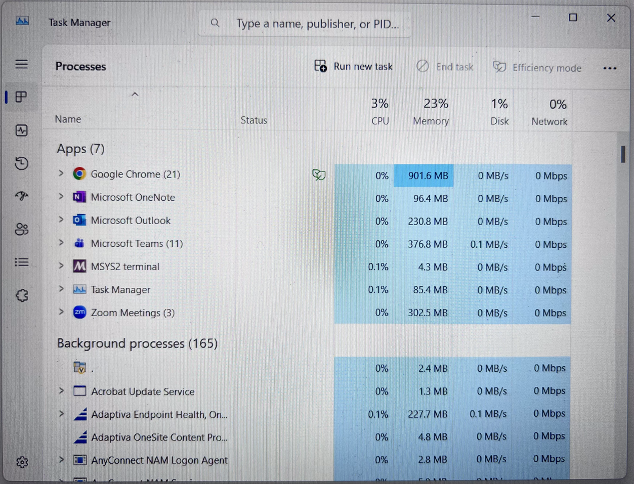 # 获取可用内存 free_bytes=$(wmic OS get FreePhysicalMemory 2>/dev/null | grep '[0-9]' | awk '{print $1 * 1024}') if [[ -n "$free_bytes" ]]; then free_gb=$(echo "$free_bytes" | awk '{printf "%.2f", $1/1024/1024/1024}') used_gb=$(echo "$memory_bytes $free_bytes" | awk '{printf "%.2f", ($1-$2)/1024/1024/1024}') echo "内存使用: 已用 ${used_gb}GB / 可用 ${free_gb}GB" fi else echo "内存大小: 无法获取" fi else echo "内存大小: 无法获取 (wmic未找到)" fi