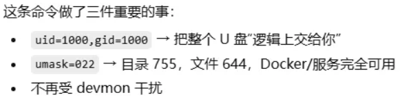 - 系统会自动挂载(通常到/mnt/docker-usb或类似路径,你之前就是这个)