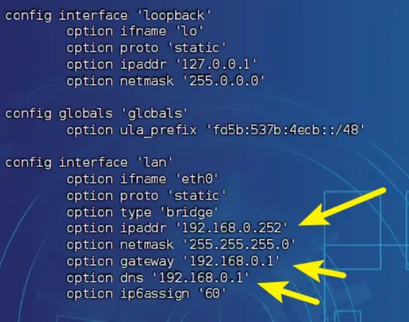 3option ipaddr '192.168.0.252' # 252这是我自定义的