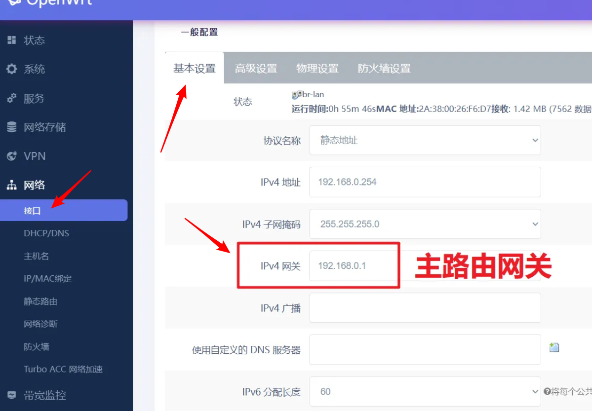 如果不清楚自己的主路由器网关地址和网段,那就请看下面这一章节。