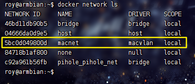docker network create -d macvlan --subnet=192.168.0.0/24 --gateway=192.168.0.1 -o parent=wlan0 macnet